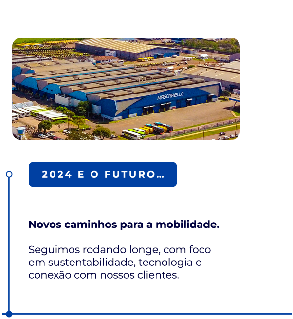 Desde 2003, nós, da Mascarello Carrocerias e Ônibus, estamos transformando a mobilidade com inovação, conforto e segurança. Primeira encarroçadora de ônibus do Paraná, nascemos dentro de um grupo sólido e visionário, ao lado da Comil Silos e da Mascor Empreendimentos.